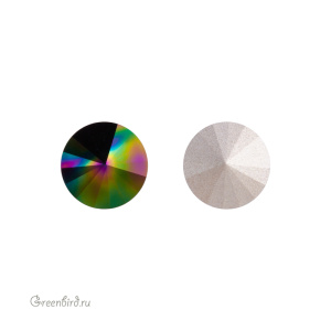 Компонент для бижутерии Swarovski – Риволи (Swarovski Rivoli). Размер: SS 39 (8,19 – 8,31 мм, высота: 4,33 мм, может незначительно отличаться), цвет: Rainbow Dark (#001RABDK). Производство: Австрия. Цена указана за 1 шт.