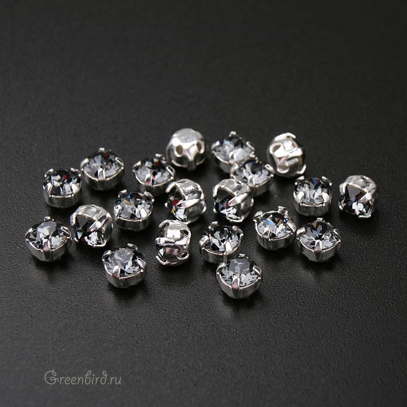 Шатоны с кристаллом Swarovski в оправе (Chaton Montees). Размер: 4 х 4 х 3,5 мм, четыре отверстия 0,9 мм. Материал: латунь, покрытие: серебро. Кристалл арт. 1088, цвет: Silver Night (#001SINI), размер: PP31/SS16 (3,80 – 4,00 мм). Производство: Австрия. Цена указана за 20 шт.