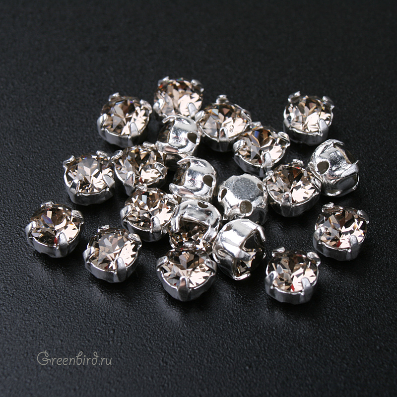 Шатоны с кристаллом Swarovski в оправе (Chaton Montees). Размер: 4 х 4 х 3,5 мм, четыре отверстия: 0,9 мм. Материал: латунь, покрытие: серебро. Кристалл арт. 1088, цвет: Greige (#284), размер: PP31/SS16 (3,80 – 4,00 мм). Производство: Австрия. Цена указана за 20 шт.