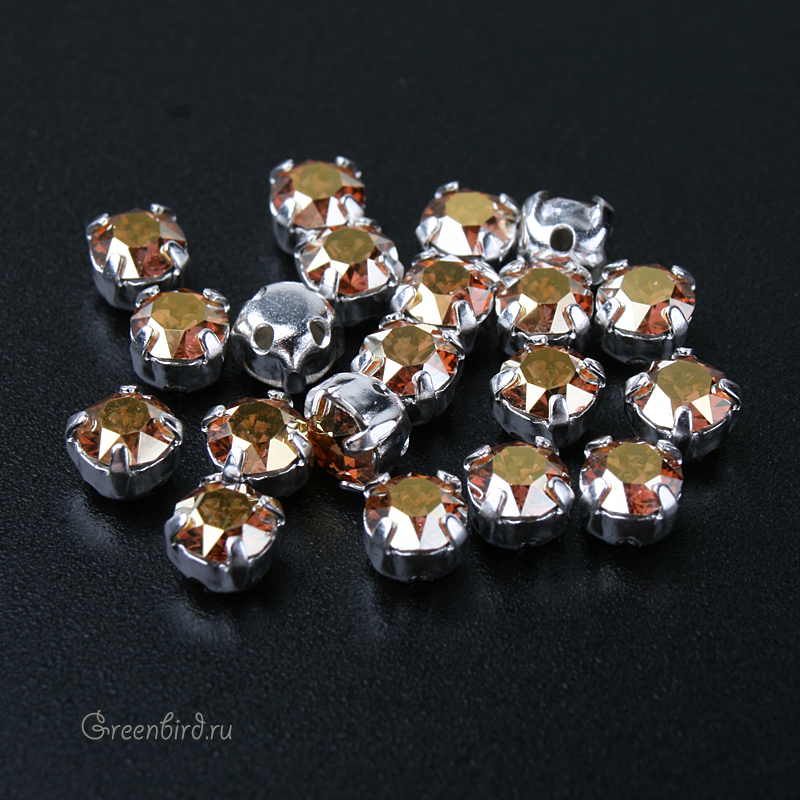 Шатоны с кристаллом Swarovski в оправе (Chaton Montees). Размер: 4 х 4 х 3,5 мм, четыре отверстия: 0,9 мм. Материал: латунь, покрытие: серебро. Кристалл арт. 1088, цвет: Metallic Sunshine (#001METSH), размер: PP31/SS16 (3,80 – 4,00 мм). Производство: Австрия. Цена указана за 20 шт.