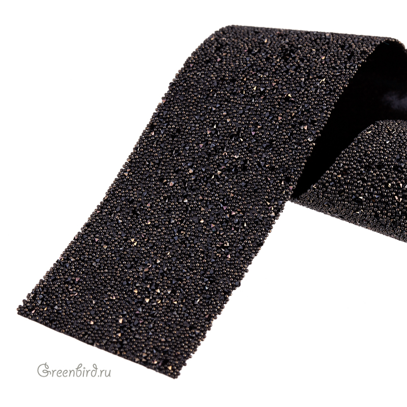 Кристальная ткань со стразами Swarovski – Crystal Fabric Bandings (лента со стразами). Ширина: 30 мм, цвет: Jet Nut (#280NUT), подложка: черная. Производство: Австрия. Цена указана за 5 см. При заказе 2 или 3 единиц этого товара вы получите непрерывный отрезок длиной 10 или 15 см соответственно.