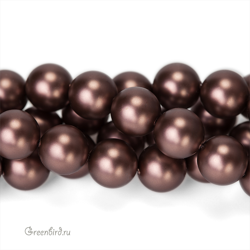 Swarovski 5810 Round — хрустальный круглый жемчуг. Размер: 10 мм, отверстие: 0,9 мм. Цвет: бархатисто-коричневый / Velvet Brown (#951). Материал: стекло с инновационным перламутровым покрытием, имитирующим натуральный жемчуг. Производство: Австрия. Цена указана за 10 шт.