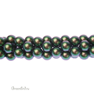 Swarovski 5810 Round — хрустальный круглый жемчуг. Размер: 10 мм, отверстие: 0,9 мм. Цвет: зеленый скарабей / Scarabaeus Green (#946). Материал: стекло с инновационным перламутровым покрытием, имитирующим натуральный жемчуг. Производство: Австрия. Цена указана за 10 шт.