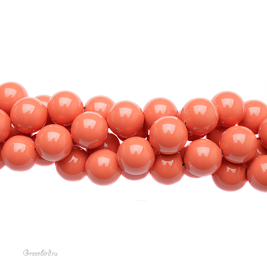 Swarovski 5810 Round — хрустальный круглый жемчуг. Размер: 12 мм, отверстие: 0,9 мм. Цвет: коралловый / Coral (#816). Материал: стекло с инновационным перламутровым покрытием, имитирующим натуральный жемчуг. Производство: Австрия. Цена указана за 1 шт.