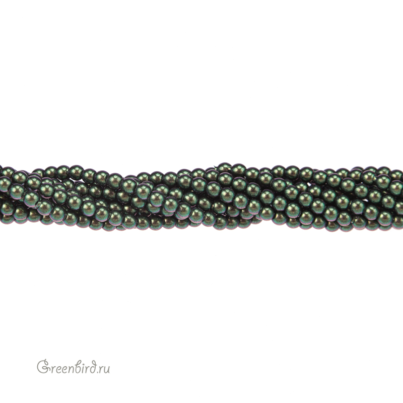 Swarovski 5810 Round — хрустальный круглый жемчуг. Размер: 2 мм, отверстие: 0,6 мм. Цвет: зеленый скарабей / Scarabaeus Green (#946). Материал: стекло с инновационным перламутровым покрытием, имитирующим натуральный жемчуг. Производство: Австрия. Цена указана за 50 шт.