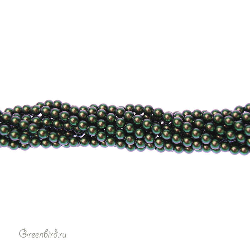 Swarovski 5810 Round — хрустальный круглый жемчуг. Размер: 3 мм, отверстие: 0,9 мм. Цвет: зеленый скарабей / Scarabaeus Green (#946). Материал: стекло с инновационным перламутровым покрытием, имитирующим натуральный жемчуг. Производство: Австрия. Цена указана за 50 шт.