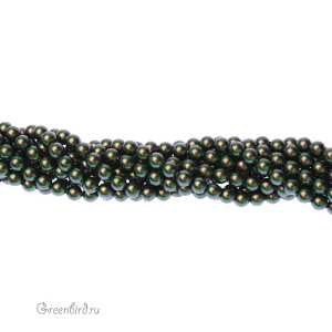 Swarovski 5810 Round — хрустальный круглый жемчуг. Размер: 4 мм, отверстие: 0,9 мм. Цвет: зеленый скарабей / Scarabaeus Green (#946). Материал: стекло с инновационным перламутровым покрытием, имитирующим натуральный жемчуг. Производство: Австрия. Цена указана за 50 шт.