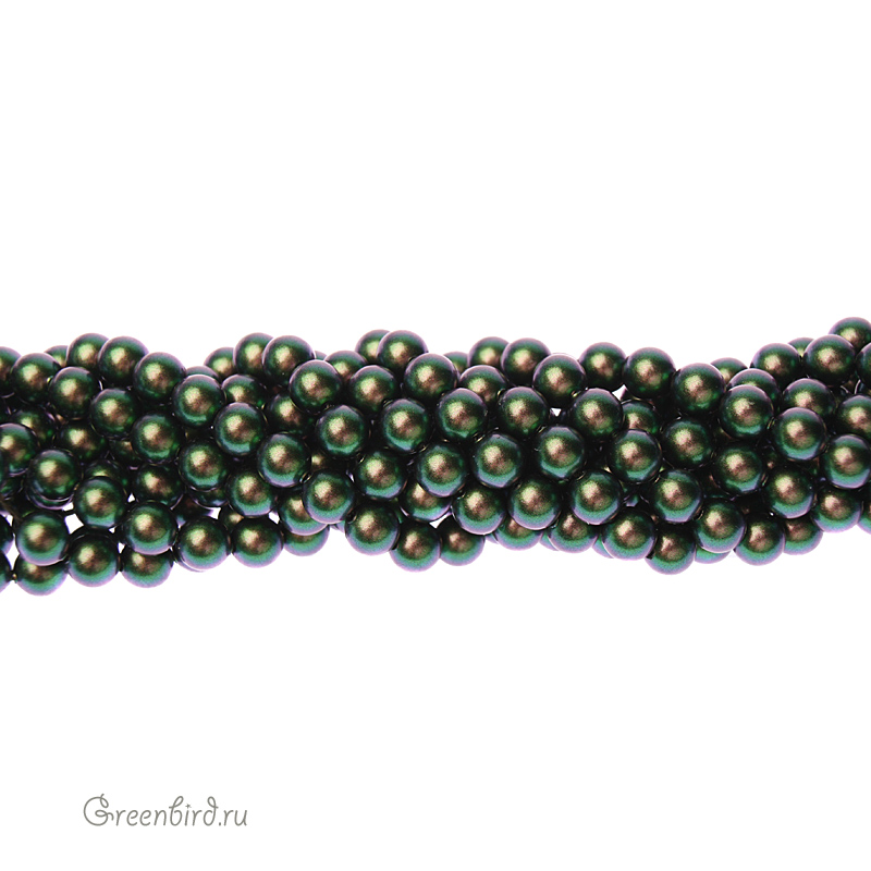 Swarovski 5810 Round — хрустальный круглый жемчуг. Размер: 5 мм, отверстие: 0,9 мм. Цвет: зеленый скарабей / Scarabaeus Green (#946). Материал: стекло с инновационным перламутровым покрытием, имитирующим натуральный жемчуг. Производство: Австрия. Цена указана за 20 шт.