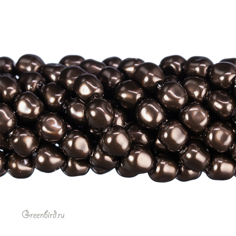 Swarovski 5840 Baroque — хрустальный жемчуг барочный (винтажный). Размер: 5,9 х 6,2 х 6,2 мм, отверстие: 0,9 мм. Цвет: темно-коричневый / Deep Brown (#414). Материал: стекло с инновационным перламутровым покрытием, имитирующим натуральный жемчуг. Производство: Австрия. Цена указана за 1 шт.