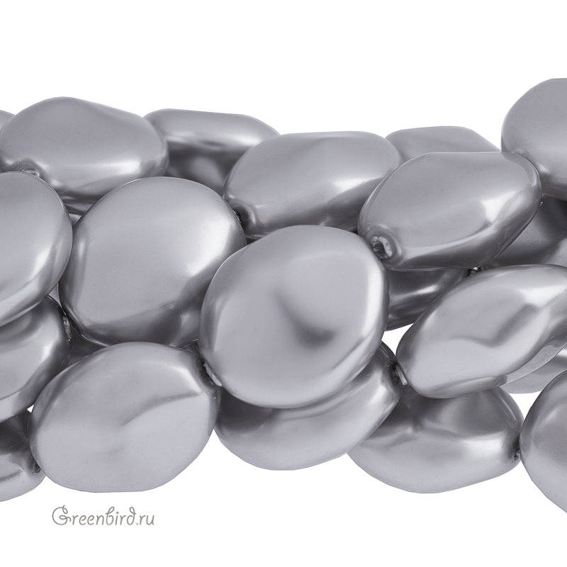 Swarovski 5842 Baroque Coin — хрустальный плоский барочный жемчуг. Размер: 14,4 х 12,6 х 8,2 мм, отверстие: 0,5-0,6 мм. Цвет: светло-серый / Light Grey (#616). Материал: стекло с инновационным перламутровым покрытием, имитирующим натуральный жемчуг. Производство: Австрия. Цена указана за 1 шт.
