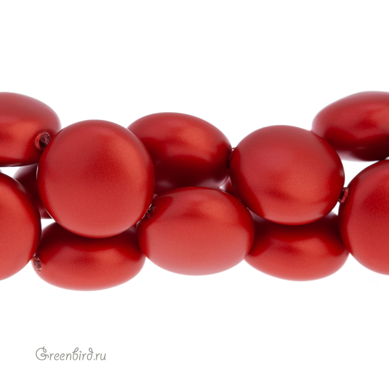 Swarovski 5860 Coin — плоский хрустальный жемчуг. Размер: 14 х 8 мм, отверстие: 1,3 мм. Цвет: руж / красный бархат / Rouge (#2027). Материал: стекло с инновационным перламутровым покрытием, имитирующим натуральный жемчуг. Производство: Австрия. Цена указана за 1 шт.