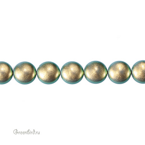 Swarovski 5860 Coin — плоский хрустальный жемчуг. Размер: 14 х 8 мм, отверстие: 1,3 мм. Цвет: иризирующий зеленый / Iridescent Green (#930). Материал: стекло с инновационным перламутровым покрытием, имитирующим натуральный жемчуг. Производство: Австрия. Цена указана за 1 шт.
