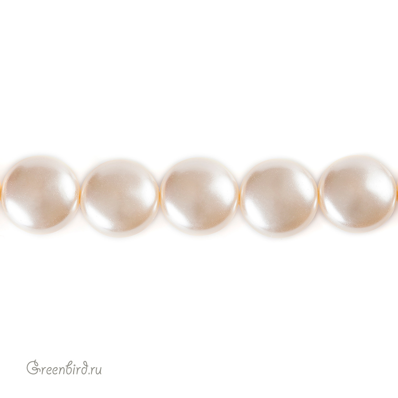Swarovski 5860 Coin — плоский хрустальный жемчуг. Размер: 16 х 9,5 мм, отверстие: 1,3 мм. Цвет: кремово-розовый / Creamrose (#621). Материал: стекло с инновационным перламутровым покрытием, имитирующим натуральный жемчуг. Производство: Австрия. Цена указана за 1 шт.
