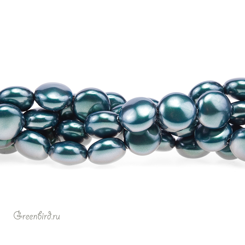 Swarovski 5860 Coin — плоский хрустальный жемчуг. Размер: 12 х 7 мм, отверстие: 1 мм. Цвет: иризирующий зеленый таити / Iridescent Tahitian Look (#2004). Материал: стекло с инновационным перламутровым покрытием, имитирующим натуральный жемчуг. Производство: Австрия. Цена указана за 1 шт.