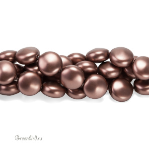Swarovski 5860 Coin — плоский хрустальный жемчуг. Размер: 12 х 7 мм, отверстие: 1 мм. Цвет: бархатисто-коричневый / Velvet Brown (#951). Материал: стекло с инновационным перламутровым покрытием, имитирующим натуральный жемчуг. Производство: Австрия. Цена указана за 1 шт.
