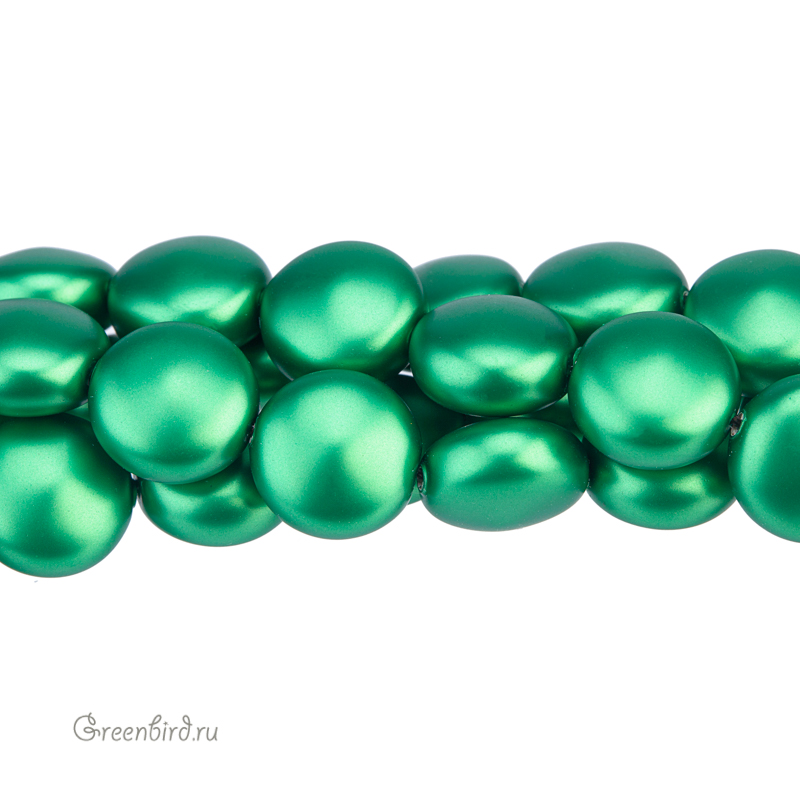 Swarovski 5860 Coin — плоский хрустальный жемчуг. Размер: 12 х 7 мм, отверстие: 1 мм. Цвет: эдем зеленый / Eden Green (#2014). Материал: стекло с инновационным перламутровым покрытием, имитирующим натуральный жемчуг. Производство: Австрия. Цена указана за 1 шт.