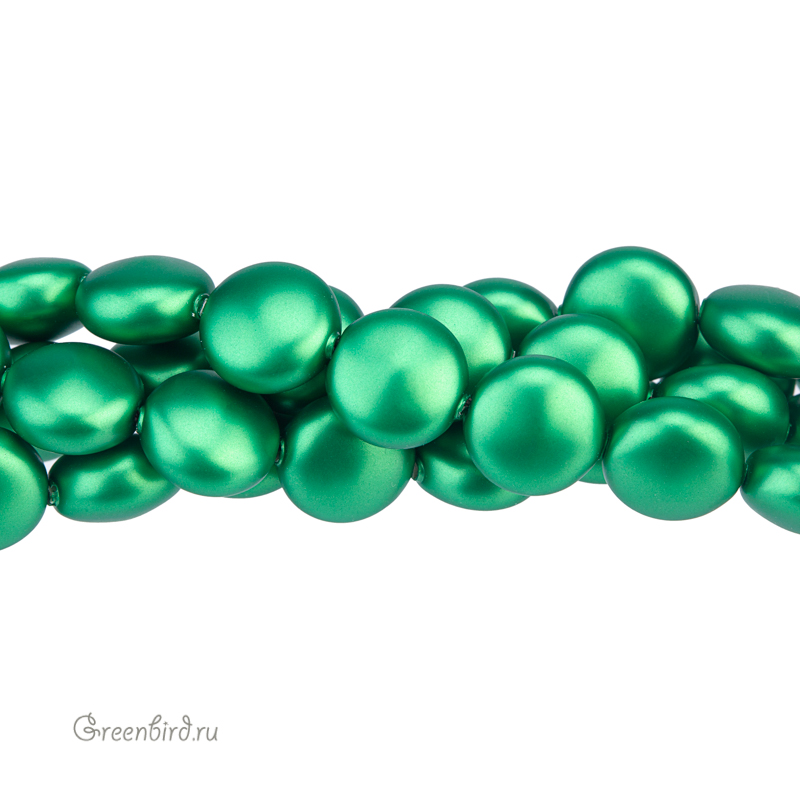Swarovski 5860 Coin — плоский хрустальный жемчуг. Размер: 10 х 6 мм, отверстие: 1 мм. Цвет: эдем зеленый / Eden Green (#2014). Материал: стекло с инновационным перламутровым покрытием, имитирующим натуральный жемчуг. Производство: Австрия. Цена указана за 1 шт.
