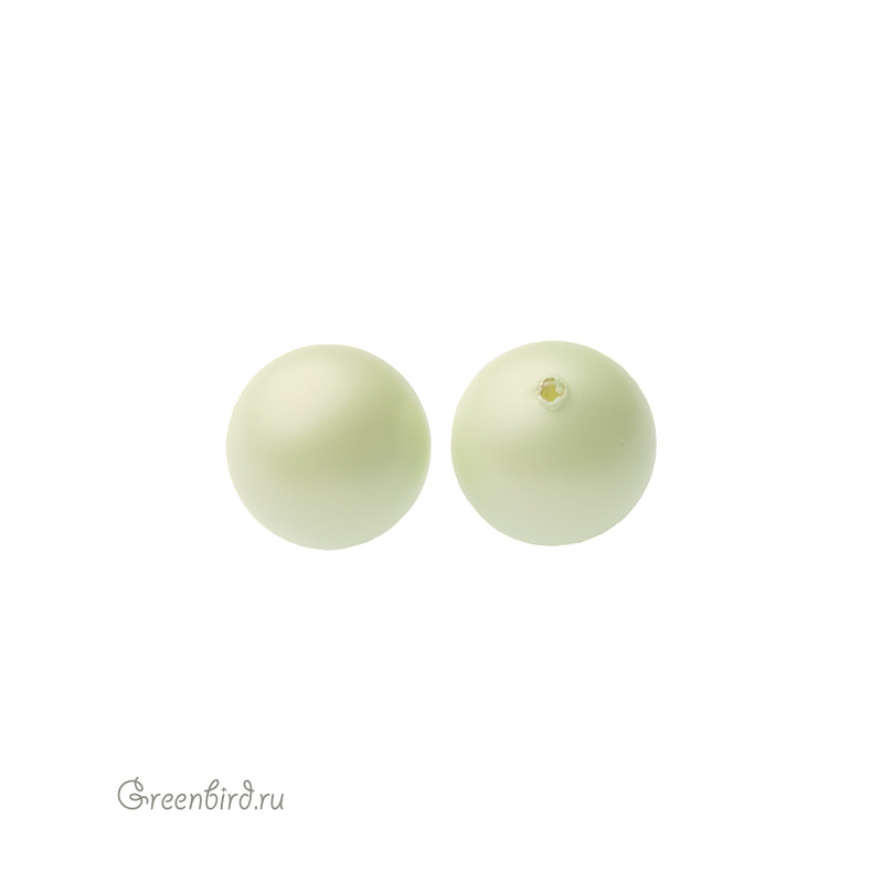 Swarovski 5818 Round Half Drilled — полупросверленный круглый хрустальный жемчуг. Размер: 10 мм, отверстие: 0,8 мм, глубина отверстия: 5 мм. Цвет: пастельно-зеленый / Pastel Green (#967). Материал: стекло с инновационным перламутровым покрытием, имитирующим натуральный жемчуг. Производство: Австрия. Цена указана за 1 шт.