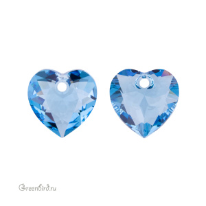 Компонент для бижутерии Swarovski – подвеска-сердечко (Swarovski Heart Cut Pendant). Размер: 10,5 мм, отверстие: 1 мм, цвет: Aquamarine (#202). Производство: Австрия. Цена указана за 1 шт.