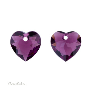 Компонент для бижутерии Swarovski – подвеска-сердечко (Swarovski Heart Cut Pendant). Размер: 10,5 мм, отверстие: 1 мм, цвет: Amethyst (#204). Производство: Австрия. Цена указана за 1 шт.