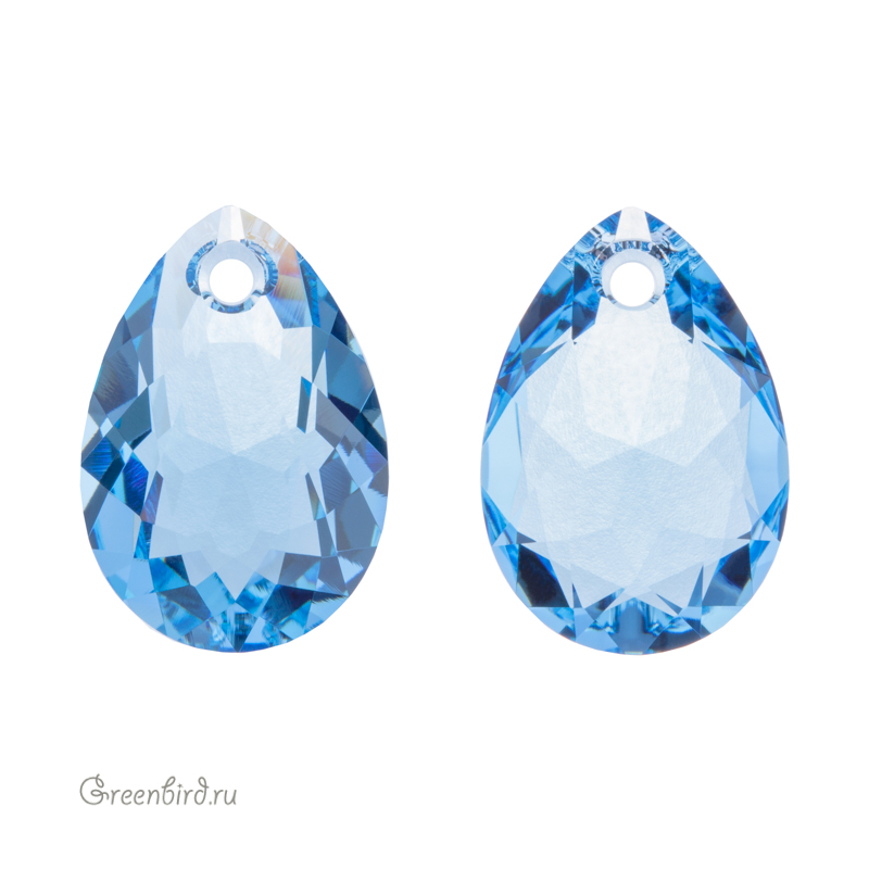 Компонент для бижутерии Swarovski – подвеска грушевидной формы (Swarovski Pear Cut Pendant). Размер: 16 мм, отверстие: 1,4 мм, цвет: Aquamarine (#202). Производство: Австрия. Цена указана за 1 шт.\n