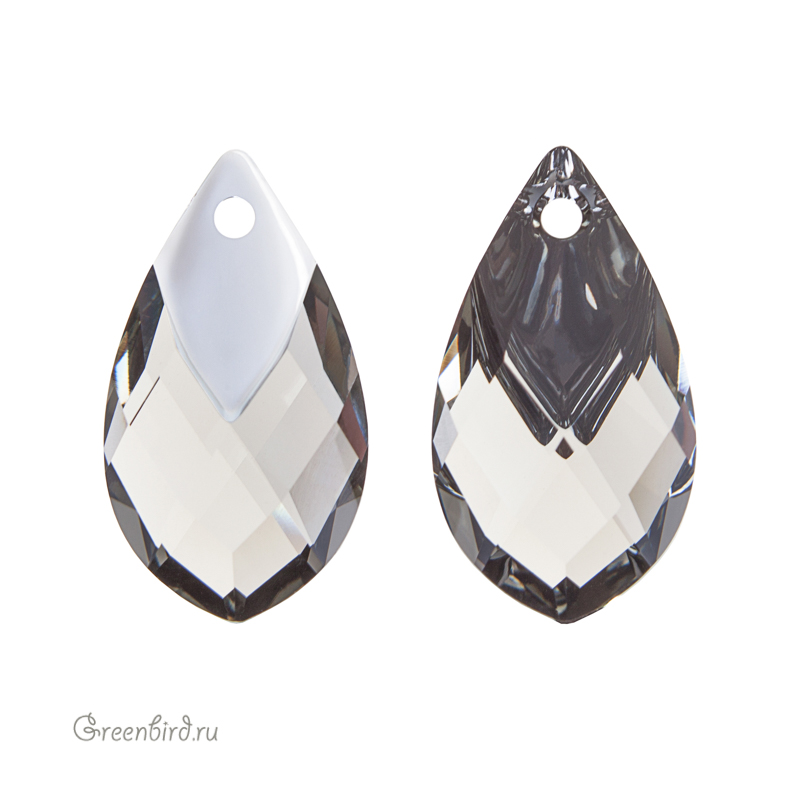 Компонент для бижутерии Swarovski – подвеска грушевидной формы с выемкой под бейл (Swarovski Met Cap Pear-shaped Pendant). Размер: 22 мм, цвет: Black Diamond Light Chrome Z (#215LTCHZ). Производство: Австрия. Цена указана за 1 шт.