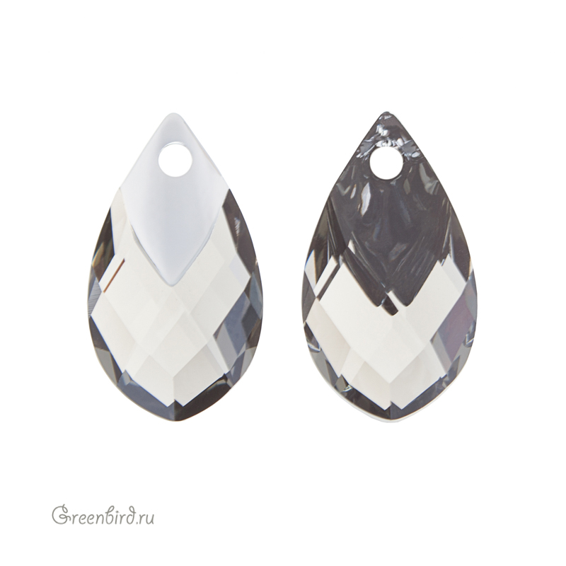 Компонент для бижутерии Swarovski – подвеска грушевидной формы с выемкой под бейл (Swarovski Met Cap Pear-shaped Pendant). Размер: 18 мм, цвет: Black Diamond Light Chrome Z (#215LTCHZ). Производство: Австрия. Цена указана за 1 шт.