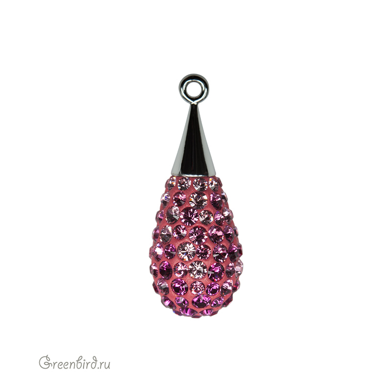 Компонент для бижутерии Swarovski – подвеска Pave Капля (подвеска с кристальным паве). Размер: 26 мм, цвет: Fuchsia/Rose/Light Rose (#502/209/223), материал: латунь, покрытие: родий. Производство: Австрия. Цена указана за 1 шт.