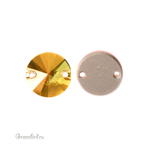 Swarovski 3200 Rivoli Sew-on Stone – пришивные стразы Риволи. Размер: 12 мм, два отверстия: 0,9 мм. Цвет: прозрачный с эффектом "Солнечный металлик" с фольгированием / Crystal Metallic Sunshine Foiled (#001METSH). Производство: Австрия. Цена указана за 1 шт.