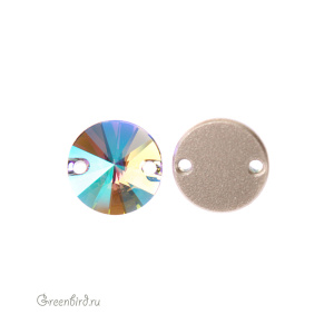 Swarovski 3200 Rivoli Sew-on Stone – пришивные стразы Риволи. Размер: 10 мм, два отверстия: 0,9 мм. Цвет: прозрачный с эффектом "Райское сияние" с фольгированием / Crystal Paradise Shine Foiled (#001PARSH). Производство: Австрия. Цена указана за 1 шт.