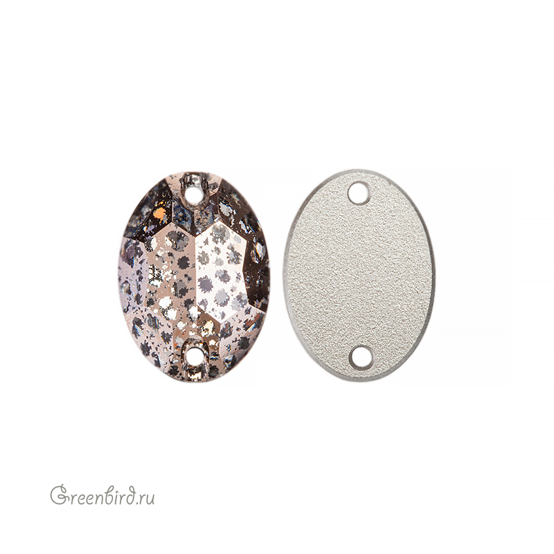 Swarovski 3210 Oval Sew-on Stone – пришивные стразы овальной формы с двумя отверстиями. Размер: 10 х 7 мм, отверстие: 1,5 мм. Цвет: прозрачный с эффектом "Розовая патина" / Crystal Rose Patina Foiled (#001ROSPA). Производство: Австрия. Цена указана за 1 шт.