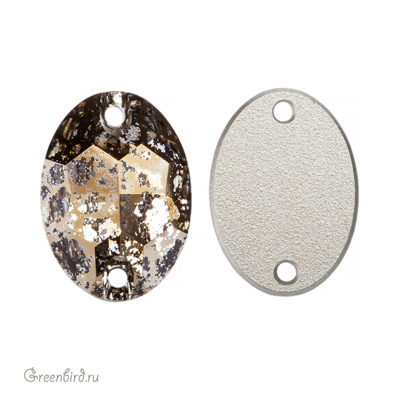 Swarovski 3210 Oval Sew-on Stone – пришивные стразы овальной формы с двумя отверстиями. Размер: 16 х 11 мм, отверстие: 1,6 мм. Цвет: прозрачный с эффектом "Золотая патина" с фольгированием / Crystal Gold Patina Foiled (#001GOLPA). Производство: Австрия. Цена указана за 1 шт.