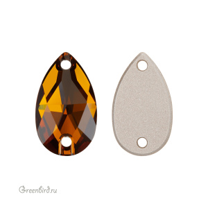 Swarovski 3230 Drop Sew-on Stone – пришивные стразы в форме капли с двумя отверстиями. Размер: 18 х 10,5 мм, отверстие: 1,4 мм. Цвет: светлый янтарь с фольгированием / Golden Topaz Foiled (#1002). Производство: Австрия. Цена указана за 1 шт.