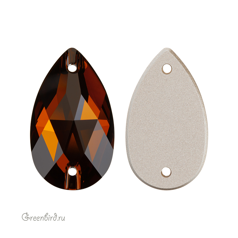 Swarovski 3230 Drop Sew-on Stone – пришивные стразы в форме капли с двумя отверстиями. Размер: 28 х 17 мм, отверстие: 1,5 мм. Цвет: дымчатый топаз с фольгированием / Smoked Topaz Foiled (#1001). Производство: Австрия. Цена указана за 1 шт.