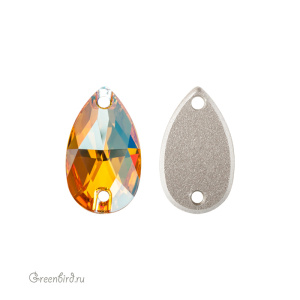 Swarovski 3230 Drop Sew-on Stone – пришивные стразы в форме капли с двумя отверстиями. Размер: 18 х 10,5 мм, отверстие: 1,4 мм. Цвет: светлый топаз с мерцающим эффектом с фольгированием / Light Topaz Shimmer Foiled (#226SHIM). Производство: Австрия. Цена указана за 1 шт.