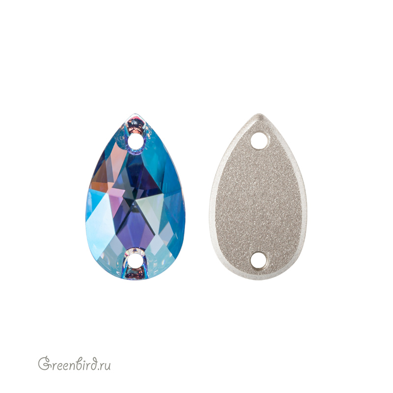 Swarovski 3230 Drop Sew-on Stone – пришивные стразы в форме капли с двумя отверстиями. Размер: 12 х 7 мм, отверстие: 0,9 мм. Цвет: светлый сапфир с мерцающим эффектом с фольгированием / Light Sapphire Shimmer Foiled (#211SHIM). Производство: Австрия. Цена указана за 1 шт.