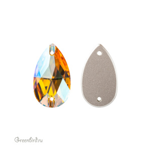 Swarovski 3230 Drop Sew-on Stone – пришивные стразы в форме капли с двумя отверстиями. Размер: 28 х 17 мм, отверстие: 1,5 мм. Цвет: светлый топаз с мерцающим эффектом с фольгированием / Light Topaz Shimmer Foiled (#226SHIM). Производство: Австрия. Цена указана за 1 шт.