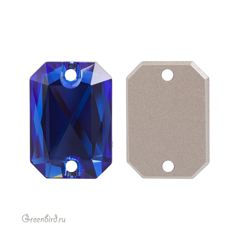 Swarovski 3252 Emerald Cut Sew-on Stone – пришивные стразы в форме октагона с огранкой "Изумруд" с двумя отверстиями. Размер: 20 х 14 мм. Цвет: величественный синий с фольгированием / Majestic Blue Foiled (#296). Производство: Австрия. Цена указана за 1 шт.