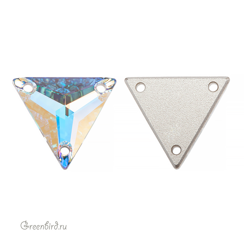 Пришивные стразы Swarovski (Треугольник) – Triangle Sew-on Stone. Размер: 16 мм, отверстие: 1,6 мм, цвет: Crystal Aurore Boreale (#001AB). Производство: Европейский союз. Цена указана за 1 шт.