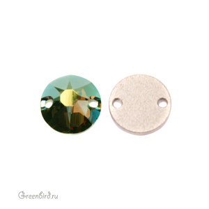 Swarovski 3288 Sew-on Stone – пришивные стразы круглой формы с двумя отверстиями. Размер: 8 мм, отверстие: 0,8 мм. Цвет: прозрачный с эффектом "Иризирующий зеленый" с фольгированием / Crystal Iridescent Green Foiled (#001IRIG). Производство: Австрия. Цена указана за 1 шт.