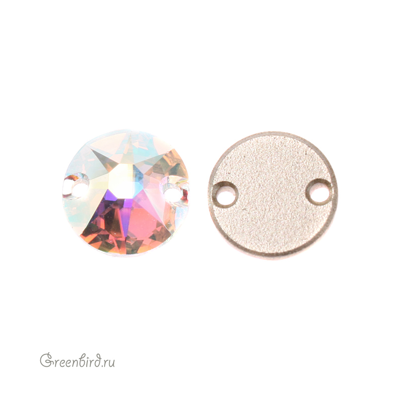 Swarovski 3288 Sew-on Stone – пришивные стразы круглой формы с двумя отверстиями. Размер: 8 мм, отверстие: 0,8 мм. Цвет: прозрачный с радужным эффектом с фольгированием / Crystal Aurore Boreale Foiled (#001AB). Производство: Австрия. Цена указана за 1 шт.