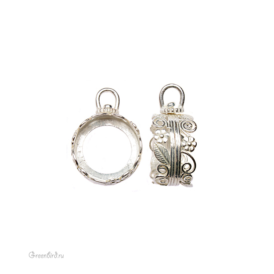 Двусторонняя оправа для круглого кабошона 16 мм с вращающимся колечком, размер: 25 х 18 х 10 мм. Покрытие: серебро. Производство: Израиль. Цена указана за 1 штуку.