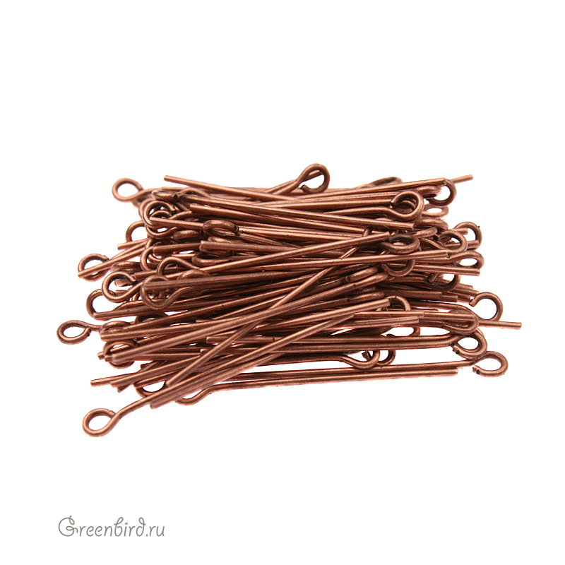 Фурнитура для бижутерии - пины с колечком (гвоздики). Цвет: античная медь. Длина: 25,9 мм, толщина: 0,7 мм. Производство: Китай. Цена указана за упаковку (примерно 100 штук).