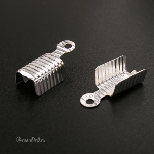 Фурнитура для бижутерии - зажим для шнура металлический. Цвет: светлое серебро. Размер: 13,8 х 6,2 мм. Производство: Китай. Цена указана за 1 штуку.
