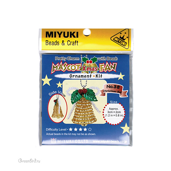 Новогодний набор MIYUKI для рукоделия в праздничной упаковке. В набор входят все материалы для создания изделия, изображенного на фото (бисер MIYUKI, пластиковые бусины, бубенчик, цепочка, проволока, соединительное колечко) и подробная инструкция на английском языке. Размер готового изделия: 3 х 2 см. Цена указана за один набор.