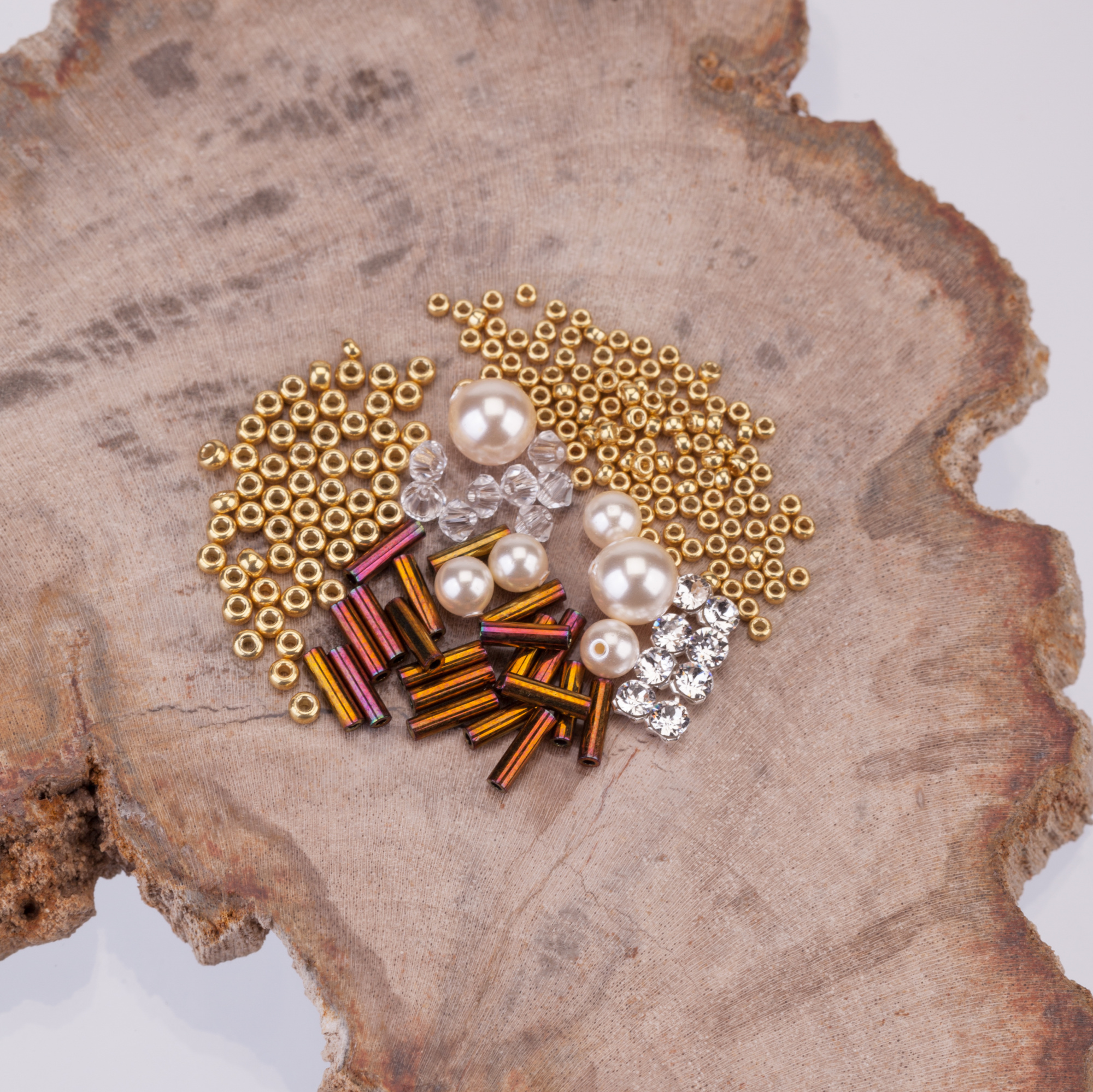 - MIYUKI Bugle 6mm – Metallic Gold Iris (#462) - 20 шт. (Стеклярус этого цвета окрашен неравномерно. Мы постарались расфасовать бусины так, чтобы вы могли выбрать какой из оттенков использвать для лицевой стороны плетения)