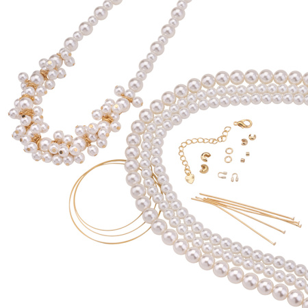 Набор материалов для сборки колье включает тщательно подобранные материалы и качественную фурнитуру. Создайте стильный жемчужный чокер своими руками — идеальный аксессуар для любого образа.