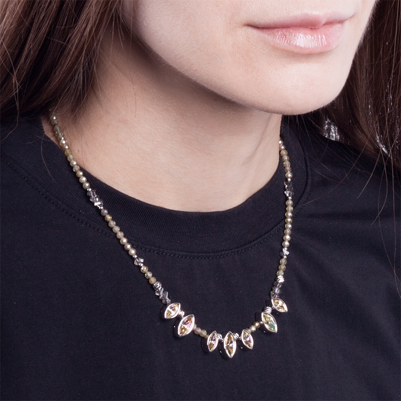 Набор материалов для сборки чокера включает тщательно подобранные материалы и качественную фурнитуру, которые позволят собрать уникальное украшение своими руками. Создайте изысканный чокер с кристаллами в оправах Crystalbird, цирконами и миксом разделительных бусин.