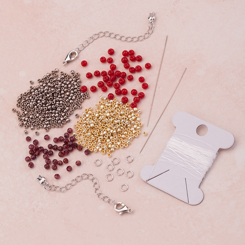 В набор входят все необходимые материалы на два браслета разных цветов: