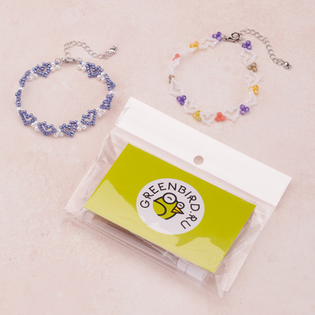 В набор входят все необходимые материалы на два браслета разных цветов: